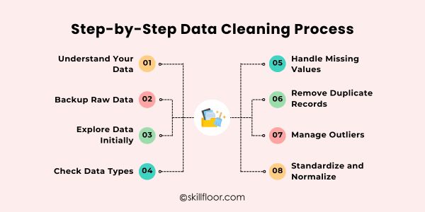 Know Your Data: Examine your dataset for a while before making any modifications. You may identify mistakes and create the best cleaning plan by being aware of column meanings, data kinds, and common trends.