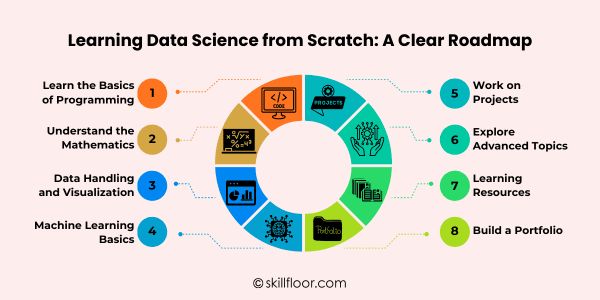 Although beginning a career in data science can seem overwhelming, it is possible if you take it step by step. You can develop your skills gradually and confidently by studying programming, comprehending arithmetic, analyzing data, and working on projects. Beginners can stay focused, prevent confusion, and develop their expertise by adhering to a defined road map for data science. To get experience and feedback, don't forget to interact with communities, post your work in a portfolio, and continue trying with tiny projects. You can develop over time by continuing to be patient, consistent, and inquisitive. Even novices can gain strong abilities, gain a thorough understanding of statistics, and open doors to intriguing careers in this rapidly expanding profession with commitment and practice.
